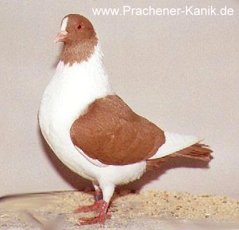 Ich störte mich an dem recht lockeren Schildgefieder, dem blassen Augenrand und der flachen Stirn. Zu den Vorzügen dieser Taube gehören die kompakte und kräftige Form sowie die intensive Grundfarbe.