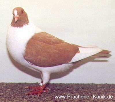 Im ersten Jahr, in dem ich zielgerichtet gelbe Prachener Kanik zog waren es zwar nur Täubinnen, die nach dem ersten Sortieren übrig blieben, aber auch diese mussten sich keineswegs vor der Konkurrenz verstecken. So errang die oben abgebildete 0,1 auf der HSS HV und überzeugte mit einem für gelbe Prachener Kanik bisher völlig ungewohnten kräftigen Körper. Nur in der Zeichnung bereiten die Gelben einige Schwierigkeiten, da sie sehr schnell zu einem weißen Keil in der Hinterkopfzeichnung (besonders hinter dem Auge) und Keilweiß neigen, was bei Gelben mit etwas Fingerspitzengefühl beurteilt werden sollte.