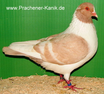 Der abgebildete Täuber gefällt durch seine vorbildliche Form, schönen Kopfpunkte sowie Augen und Augenränder. Nur in der Grundfarbe dürfte er noch etwas intensiver sein im Vergleich zu den anderen Gelben mit weißen Binden. Man sollte sich allerdings nie die utopische Wunschvorstellung eines intensiven Gelbes, wie bei den Gelben (ohne Binden), in den Kopf setzen.