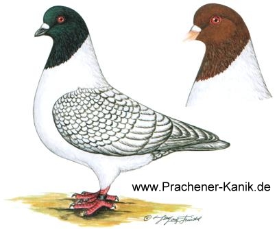 Herkunft: Frühere Tschechoslowakei (Tschechien), in Mähren aus Florentinern, Kröpfern und Feldtauben erzüchtet.